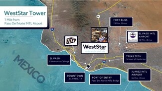 The WestStar Tower is an Office space in El Paso, TX that is encompassed by a vibrant downtown rich with dining and entertainment. The featured 14th floor comes complete with ample building amenities and floor-to-ceiling windows that provide for a generous amount of natural lighting and remarkable panoramic views.