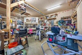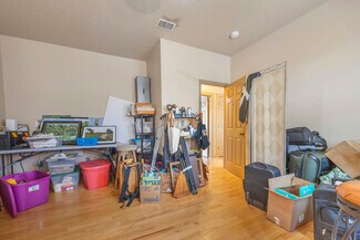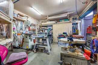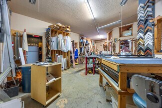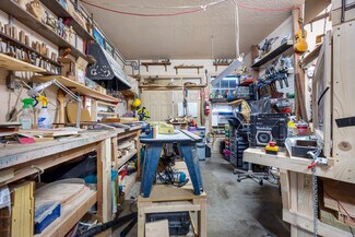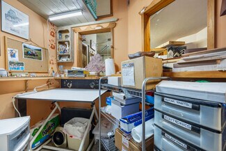 Unit A serves as a spacious first floor commercial office or retail space, featuring a kitchenette, a bathroom, and a private back deck. The front entryway has a potential reception office, an open workspace, and an attached workshop with two sets of double doors for ease of access. Additionally, there’s a generous shared side yard with a deck, perfect for business gatherings or outdoor flexibility, blending functionality with a welcoming ambiance.