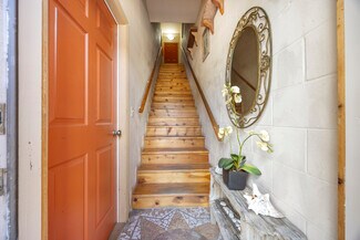 Unit D, the residential component, offers an upstairs charming two-bedroom, one-bathroom apartment with central A/C, custom maple cabinetry in the kitchen, and beautiful maple and tile flooring throughout. With both front and rear balconies, this unit provides inviting spaces to relax and enjoy the views. It currently holds a lease, generating steady rental income.