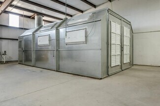 Equipped with a functional paint booth within the warehouse. Features include 16' sidewalls, a 14' X 12' overhead door, and two distinct warehouse areas separated by an overhead door. The property is secured with fencing and an electric gate. It also includes amenities such as two heaters, a compressor, onsite cameras, a restroom, and the option for signage.