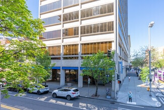The property features a third-floor terrace equipped with outdoor patio furniture, offering a comfortable and scenic space for tenants. The fully finished basement includes a gym, two locker rooms, a conference room, and a tenant storage area, providing comprehensive amenities for both fitness and business needs. Sky Bridge access is available on both the east and west sides of the building, connecting directly to the Parkade parking garage for convenient transit. Additionally, River Park Square Mall is located adjacent to the property, with access via West Main Avenue.