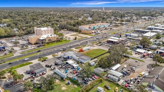 The owner will consider dividing the three parcels for sale separately. Please call for details. This former auto body shop and warehouse, with a 0.76-acre corner lot in New Port Richey and 285 square feet of US Highway 19 frontage, is now up for sale after almost 40 years of ownership by the same owner. The location, 1.64 acres comprising three lots and buildings, includes a 285 X 245 sq. ft. corner lot well-suited for any business. The area is near the City of New Port Richey entrance and within view of the city's redevelopment. See hotels, restaurants, bars, a redeveloped downtown area near the Cotee River, and a daily traffic count of 45,000 cars, more or less. Take a look at this prime site for your development opportunity.