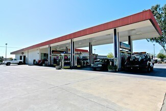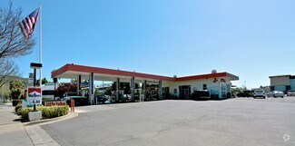 • Vacant auto repair space sharing a roofline with a busy Speedway gas station