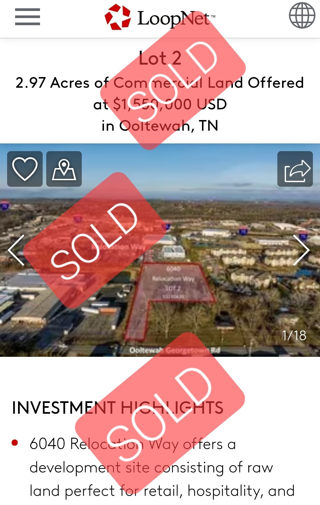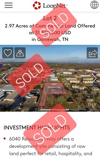 • The land features convenient ingress and egress from Relocation Way and Ooltewah Georgetown Road, leading to and providing visibility from I-75.