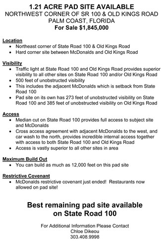 Investors and owner/users seeking a strategic Palm Coast commercial development site in a high-growth market are encouraged to reach out today.