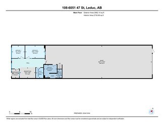 High-Visibility Commercial Property with Prime Exposure located in Jubilee Business Center. This steel frame building features a reception area, two offices, and a mezzanine level with a convenient kitchenette, making it ideal for a range of professional and commercial endeavors. Total of 3824 square feet: 2882 square foot main floor with shared office area and warehouse bay. 942 square feet of finished. Zoned GC (General Commercial) offers plenty of options for usage. mezzanine space. 10 Ton Crane Ready. LED lighting. 16' (w) X 18' (H) OH door, 26' high ceilings, 3 phase 600V power, radiant heat, floor drain, City water & sewer, natural gas, phone, internet, sprinkler system throughout, security system rough-in. 2 assigned, energized parking stalls with plenty of additional customer parking. Located in Leduc, this property benefits from proximity to major transportation routes and amenities, facilitating ease of access and connectivity. An ideal investment opportunity for businesses looking to establish or expand their presence in a vibrant and growing community.