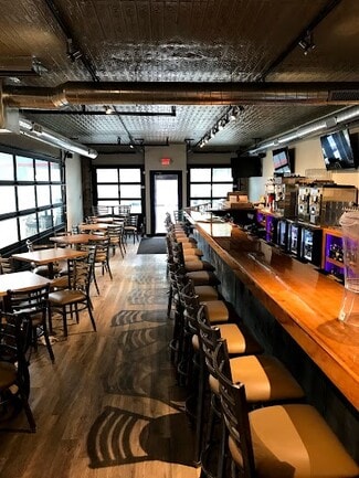 Barker Pub, located in Michigan City, Indiana, is known for craft beer, cocktails, burgers, and delicious menus. Overhead doors in the front and along the patio provide a creative use of space to create open air seating. High ceilings with an industrial flare provide a welcoming atmosphere.