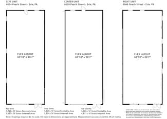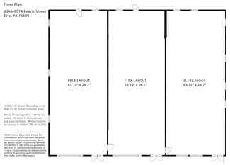 1,760 to 5,280± SF new white box space for lease. Under renovation – available December 1, 2025. Highly visible location across from Wegmans with 415’ frontage along Peach Street – Greater Erie’s major retail & service corridor with 31,000 average daily traffic (PennDOT 2024 count year). Easy ingress & egress. Located at a signalized intersection. Situated on one acre with 25+ parking spaces. Zoned C-1 Corridor Commercial (Millcreek Township). Spaces may be combined for 1,760± SF (1 unit), 3,520± SF (2 units) or 5,280± SF (entire facility). Floor plans available. Offered at $32.00/SF/YR – NNN. NNN estimated at $5.32/SF/YR. Contact broker for additional information or to schedule a tour.