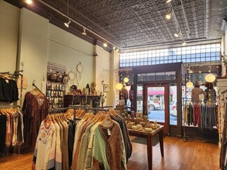 Prime downtown retail space available for lease in the historic Castanea Building in vibrant downtown Asheville. Conveniently located between the Civic Center and Malaprops bookstore with both high foot and vehicle traffic. 1920’s charm: hardwood floors, tin ceilings, natural light.