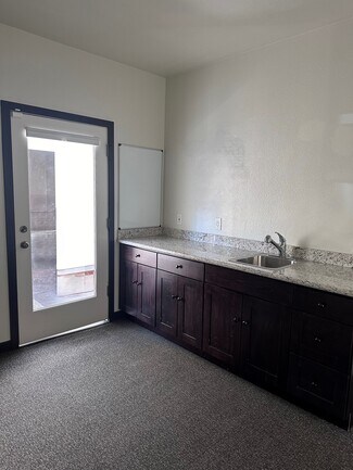 The suite has two private offices, a large open reception with a granite counter and sink.