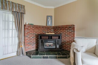 Welcome to Bellefonte, a historic home with modern amenities, perfectly located between the downtown arts and restaurant district, and easy access to two interstates. Residential zoning, with B1-C overlay and acreage, offers your choice of private retreat, home-based business, or development potential. Built on the original 1790 settlement, the house dates to 1834 with expansions and upgrades in the 1940s and ’70s. Over 4,500 sq ft of timeless elegance includes: high ceilings, hardwood floors, original wood-burning fireplaces in the living/dining rooms, a custom-built bar in the great room, and a kitchen with pantry and adjoining greenhouse. The main-level owner’s suite, with screened porch, connects discreetly to a spacious laundry, while two additional en-suite bedrooms upstairs, plus three more bedrooms on the third floor, lend themselves beautifully to a boutique B&B configuration under existing zoning. Savor pastoral views from any of four gracious porches, or retreat to the private rear walled courtyard. A 1,590 sq ft detached studio with loft and half bath presents endless possibilities for a home office, guest suite, or income-producing venture. Bellefonte is history, charm, and potential, perfectly located and preserved.