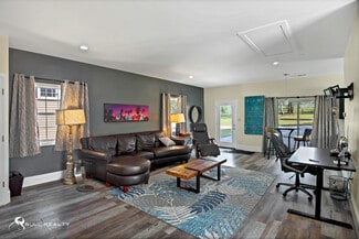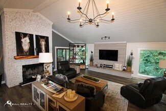The Ultimate Live / Work Opportunity - This unique and versatile, newly renovated multi-purpose property lies on 6 scenic acres in Dawson County, one of the fastest-growing communities in the U.S.. The ±8,000 SF multi-function commercial style building with 20’ + ceilings highlight the multifaceted appeal of the property, as it boasts a pickle / basketball court, elaborate theater and entertainment area, private offices, spacious gym, and bonus theatre room in addition to the “GAME DAY” entertainment area. Large format LED screens allow multiple big games to be enjoyed simultaneously, whether it’s friends and family or clients. Fitness opportunities abound with a full size pickleball court indoors alongside a basketball half-court. ±2,000 SF private office space allows undistracted work to be completed, and you can bring the dogs with you as the full-size bathroom / shower also has a dog-wash built in. If you collect cars, there’s room for plenty of those as well. This is perfect scenario for private business owners that can make good use of an ±8,000 SF shop / office, or the entrepreneur that is interested in opening an event venue / Airbnb / short-term rental scenario.
