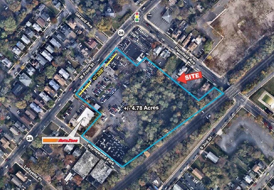 ± 4.78 acres in a redevelopment zone. Permitted uses include: retail, restaurants, banks, fitness, car wash, theaters, taverns, night clubs, mixed use residential, apartments, townhouses, professional & medical offices, assisted living, nursing homes, senior housing, funeral homes, automobile, service station, repair shops and banquet halls. THE CITY WILL CONSIDER OTHER USES ON A CASE BY CASE BASIS.