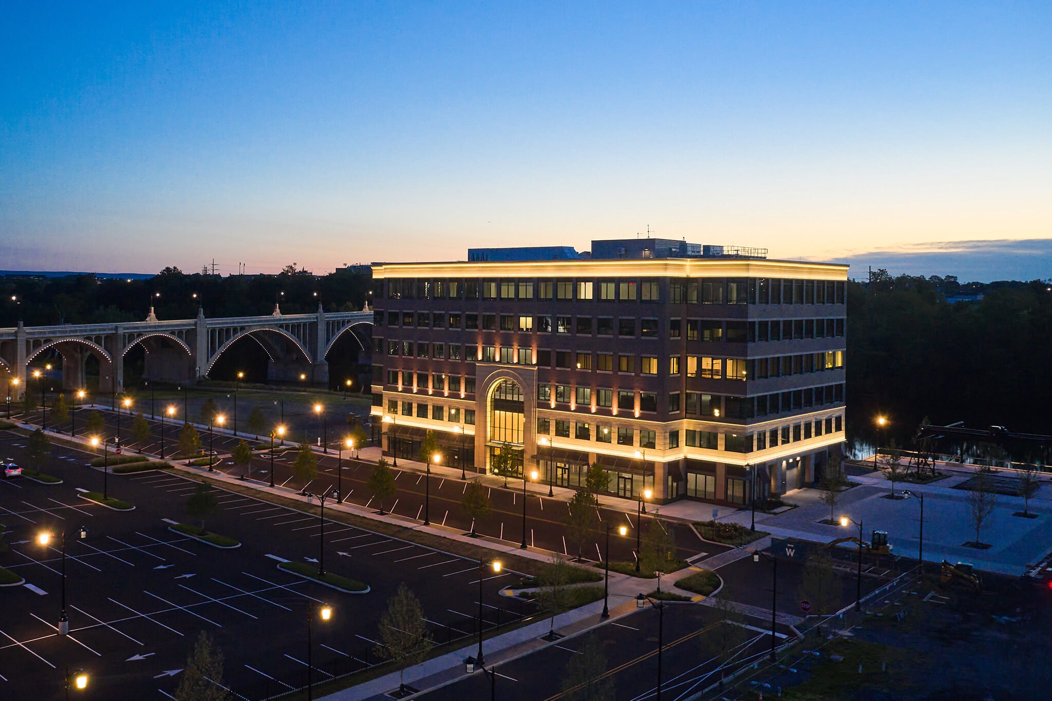 615 Waterfront Drive introduces modern transitional architecture to a dynamic lifestyle campus. The property's class A office offers tenants both panoramic water vistas and sweeping views of the developing city skyline. The River Facade is outfitted with floor to ceiling windows and balconies overlooking the Lehigh River while the City Frontage offers outside decks, meeting spaces, and views of a bustling Waterfront Drive.
