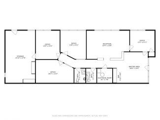 Light-filled, versatile interior: Currently built out with 4 private offices, a reception area, a waiting room, 2 restrooms, and a large storage space in the rear. The space is flooded with natural light and offers a flexible layout that can be easily reconfigured to suit a wide range of business uses.