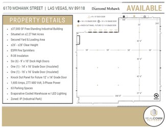 Diamond Mohawk consists of a ±37,000 SF, Free-Standing Industrial Building located at Mohawk Street & W. Patrick Lane, just West of S. Decatur Boulevard. Situated in the Southwest Submarket, Diamond Mohawk is within close proximity to the Las Vegas Strip, Allegiant Stadium, Harry Reid International Airport, and the I-15 & I-215 Freeways.