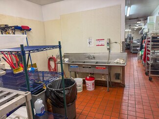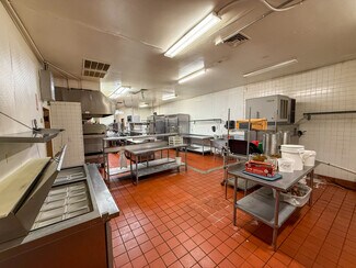 • Large commercial kitchen with ample prep space.