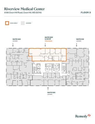 Riverview Medical Center is Oxon Hill's premier medical office building and a destination in the local community. The six (6) story medical office building offer suites ranging from 700 SF to 7,000 SF. Riverview Medical Center offers additional amenities such as an on-site pharmacy, banking and imaging. The building provides convenient access to National Harbor, Adventist HealthCare Fort Washington Medical Center and surrounding retail amenities. Located on Oxon Hill Road just off of I-495. Public transportation is located steps from the front door.
