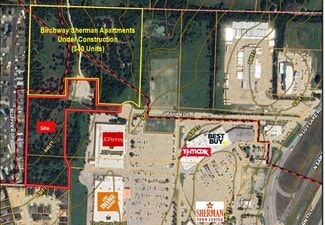 The Property is located in north central Sherman, which is exploding with growth including a Texas Instruments $30B chip plant expansion, a Globitech $5B silicon wafer plant, and an expanding Apple plant. It is specifically located at the NWQ of US-75 & US-82 behind Sherman Town Center with many anchors and retailers. A 340-Unit apartment complex is under construction to the north. Demos are solid. The site has frontage and access on Graham Drive. No second point of access has been initiated but could likely connect through the Sherman Town Center. 6.9882 Acres per survey, gentle slope, no flood, zoned C-1 Commercial, water & sewer nearby. Active vertical oil well on north section, 200’ “no structure” buffer, balance of surface to be released. Net land is ±5.2 acres.