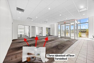 The property features signage (including a pylon sign), a 984 sq ft covered Drive-Thru, dual entry/exit points, floodlights, a large paved parking lot with 48 spaces, and existing furniture. The building offers 3009 sq ft, a spacious reception area, three private offices, a meeting room, a break room, and two handicap-accessible bathrooms. The photos highlight the property well, but it truly must be seen in person to appreciate its potential fully.