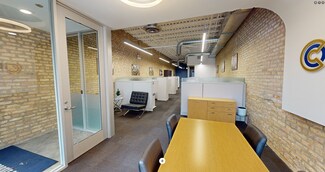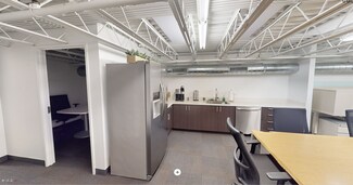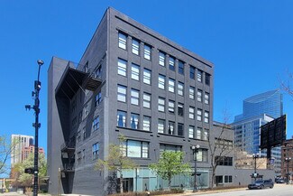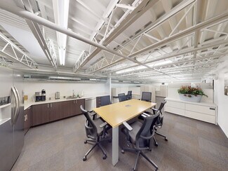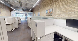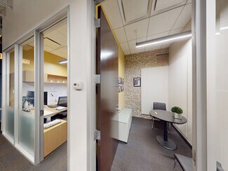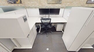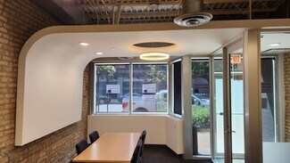 Rent is $4000/month (see below). Fully furnished office space ready to move into. All desks are sit/stand adjustable. This is a ground level space with a vestibule entrance off of Randolph Street. It has 2 floors with a staircase inside the space connecting the 1st floor to the basement floor. The first floor is primarily set up as an open office space with the following: 6 workstations (6x8), 2-seat waiting area, 1 vestibule 7x6, 1 huddle room 6x9, 1 office 11x9, 1 single user toilet room 7x5, and 1 3x2 coat closet. The 1st floor open office area has a copy area with upper and lower cabinets.