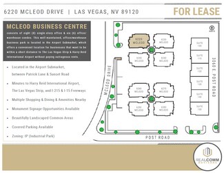 McLeod Business Centre consists of eight (8) single-story & six (6) office/warehouse condos. This well-maintained, office/warehouse business park is located in the Airport Submarket, which offers a convenient location for businesses that want to be within a short distance to the Las Vegas Strip & Harry Reid International Airport without paying outrageous rents.