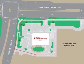 • Large 1.91 acre lot on the hard corner of the signalized intersection Eldorado Parkway and Frisco Street with multiple points of ingress/egress