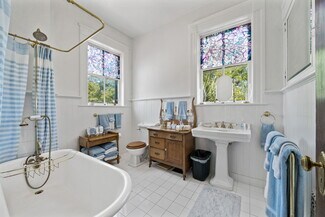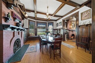 Rare opportunity in a prime location. Beautiful, historic 1895–1907 two-story office building in the heart of downtown for sale, featuring majestic columns and a beautifully manicured lawn. Parking accommodates up to 10 vehicles with an electronic gate. A walk-in attic provides storage or additional office space and offers great views of the downtown skyline. The building includes two gas fireplaces, two bathrooms, five offices, and two conference rooms with a grand entrance. Above-standard finish-out, detailed woodwork, and a covered patio complete this property.