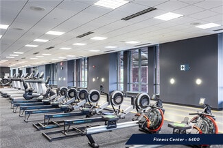 public spaces and technology. Aspiria offers multiple dining options across the campus with open contemporary designs and mouth-watering food options. Dining locations include outdoor seating in plazas and courtyards, plus dine-and-go options for those on a time crunch. In addition to walking and jogging paths throughout the campus, maintaining a fitness routine is a breeze with spin and yoga classes, a full-sized indoor basketball court, a regulation soccer field, and two tennis courts. A three-story fitness center is located onsite with cardio and weight training equipment, a sauna, and locker rooms.