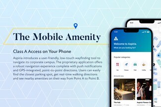 With one of the country's most secure and expansive fiber networks, Aspiria Connect is available to tenants and offers a powerful network connection, including secure global Wi-Fi across campus. Buildings are equipped with MERV-13 Air Filtration Systems, ensuring excellent air purity.