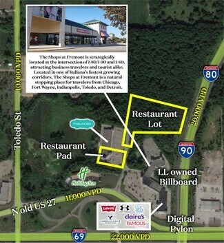 Surrounded by natural attractions like Pokagon State Park and 101 lakes, plus proximity to Trine University and downtown Fremont, this site benefits from both tourism and local demand. With parcels of 15.6 and 32.2 acres available for land lease, the campus offers flexibility for future expansion or custom development.