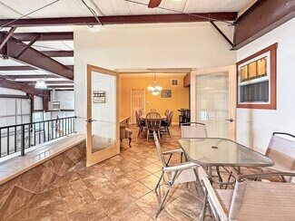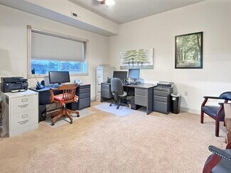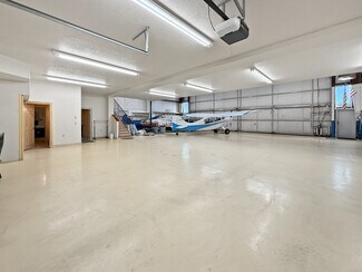 Rare fly-work-stay opportunity at Bend Municipal (KBDN). Approx 5,400 SF under roof with a fresh 37-yr ground lease. The 60' × 60' footprint (plus 150 sf bump-out) blends a Wilson bi-fold door (12' clear) hangar bay and an integrated large main-floor office & full bath. Front side offers an 8' roll-up for pull-through access. Interior RV hook-up/dump. In 2001 a ±1,650 SF mezzanine became refined crew quarters: hardwood & tile, full kitchen, dining, expansive living area, two bedrooms, and a patio overlooking the bay with sweeping Cascade views. Robust climate control with forced-air natural gas, two high-efficiency heat pumps providing both heat and A/C, a dedicated Reznor gas heater in the bay, and ceiling fans throughout. Abundant cabinetry keeps gear organized. A distinctive chance to fly, work, and stay at Central Oregon's most popular GA airport—contact listing broker for full details.