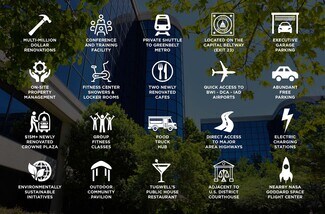 New ownership has implemented many strategic amenities, including a conference center and a private metro shuttle to the Greenbelt station. Moreover, the health programming provides a fitness center with showers and locker rooms, weekly yoga and boot camp classes, an on-site personal trainer, and wellness seminars. Food is at your fingertips with two on-site newly renovated cafés, the new Tugwell’s Public House Restaurant, and the licensed Food Truck Hub with weekly local food truck service. Additional amenities include executive garage parking and free surface parking, electric car charging stations, car-sharing service with Zipcar, an outdoor community pavilion, and 24/7/365 access with Datawatch keycard systems. The on-site Crowne Plaza has completed a $15M+ renovation with new conference facilities, banquet halls, dining, and guest rooms. The property management team is located on-site with a full team of engineers.
