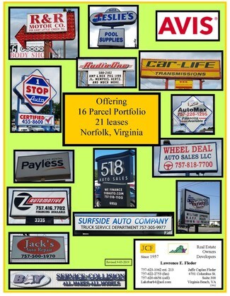 A 23 page brochure is attached explaining all 16 parcels. Page 18 relates to the parcel at 6414 Virginia Beach Boulevard., Norfolk, VA The ultimate buyer of these properties gains the opportunity to hit the ground running and be actively engaged in oversight and implementation of a proven real estate portfolio.