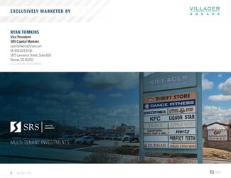 SRS Capital Markets is pleased to present the opportunity to acquire the fee simple interest (land and building ownership) in Villager Square, a grocery shadow-anchored shopping center in Broomfield, CO (Denver MSA). Anchored by Great Wall Supermarket (NAP) and Arc Thrift Store, Villager Square features a diverse mix of e-commerce-resistant tenants. With 92% occupancy, the center offers significant upside potential through the lease-up of remaining vacancies.