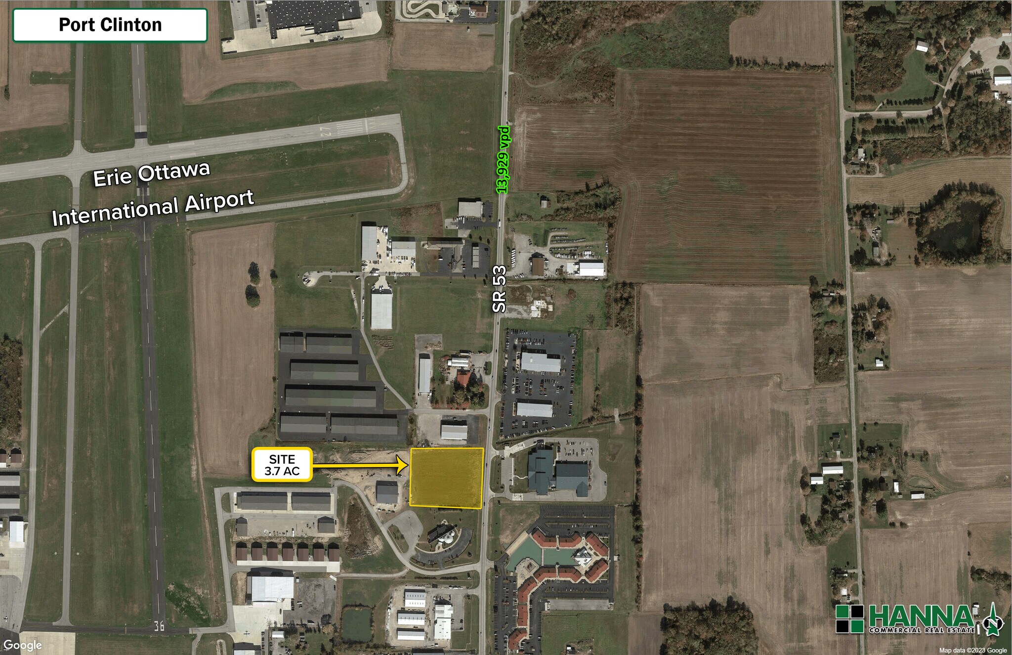 650 SE Catawba Road is a 3.7 acre commercial parcel with 350 feet of frontage on State Route 53. The property receives exposure to nearly 14,000 vehicles per day and is situated less than one mile from the Erie Ottawa International Airport.