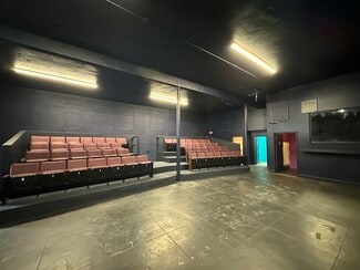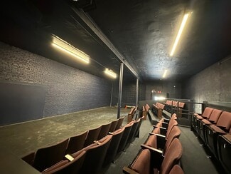 Excellent Theater Row location in East Hollywood on Santa Monica Blvd. BLACK BOX THEATER. Ready to go theater with seating, restrooms (4 toilets), dressing room, and outdoor area. Also great for classroom or showing movies. One door from the corner of Wilcox at Santa Monica Blvd. 49 seats, no parking.