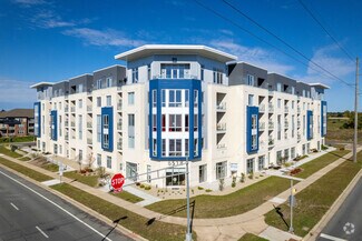 The commercial floor boasts 14-feet high ceilings and 12,164 square feet of retail mixed space of street-front and parking-faced newly constructed units. The building location provides optimal exposure to local and, soon to be off-ramp, interstate traffic. This ensures great signage opportunity with valuable exposure to the public.