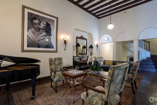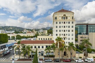 The Hollywood Athletic Club and Sunset Towers present a compelling opportunity to lease corner offices with extraordinary views of LA or host exclusive events, film and music productions, art installations, or immersive events in the epicenter of the Hollywood community. The Sunset Towers' corner offices, sweeping views, and range of spaces make it ideal for medical spas, therapists, and creative arts/media companies. The adjacent Hollywood Athletic Club oozes with old Hollywood glamour, featuring a stately entrance on Sunset Boulevard, arched ceilings with murals in the opulent Moroccan room, hand-painted beams and vintage carved oak bars in the Venetian Room, and a grand winding staircase, to name a few.