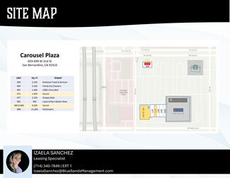 Carousel Plaza, located just off the 215 Freeway, offers prime retail opportunities in a bustling commercial area. Situated in the same parking lot as a McDonald's and a Starbucks, this plaza enjoys high visibility and consistent foot traffic from customers frequenting these popular chain locations. The convenience of nearby freeway access and the presence of established businesses makes it an ideal spot for retail ventures seeking to capitalize on a steady flow of potential customers. With ample parking and a central location, Carousel Plaza is poised to support a variety of retail businesses looking to thrive in a high-demand area. Whether you're opening a new store or expanding an existing one, this plaza provides the perfect environment for growth and success. Elsinore Town Center is a premier retail destination. Boasting exceptional visibility with massive number of vehicles passing by daily, this center offers unparalleled exposure for your business. For additional details or to schedule a tour, please contact Izaela Sanchez at Blue Sands Management at IzaelaSanchez@BlueSandsManagement.com OR (714) 340-7849 EXT 1 Today. Our team is available to answer any questions and assist with your leasing needs.