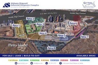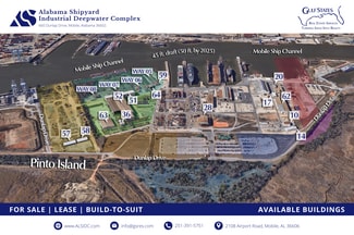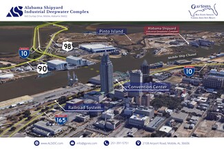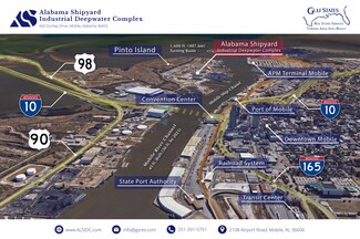 • Located along the Mobile River with a 45-foot water depth, 32 direct miles from the Gulf of Mexico and accessible to 23 states via inland waterways.