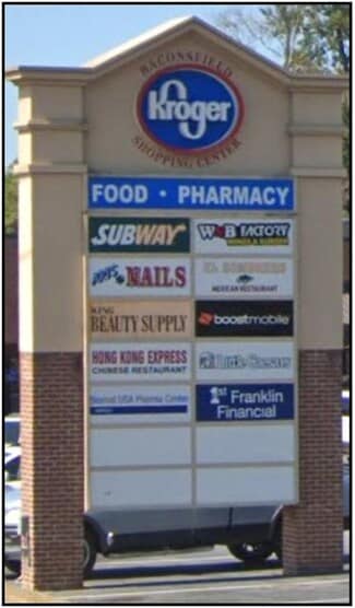 1,760± SF Retail Storefront available within the shopping center. Located in the Baconsfield Shopping Center Kroger-anchored center 44,200± VPD on Gray Highway Tenants: Kroger, Art’s Nails, Subway, El Sombrero Mexican Restaurant, Grifols Biomat Plasma Center, WNB Factory Wings & Burgers, Little Caesar Pizza, Hong Kong Express, Macon Tobacco & Vapor, Bibb County Sheriff's Office