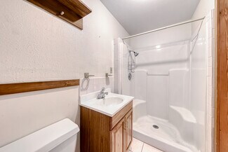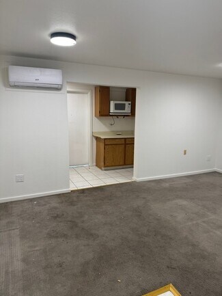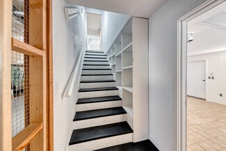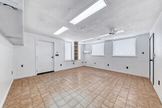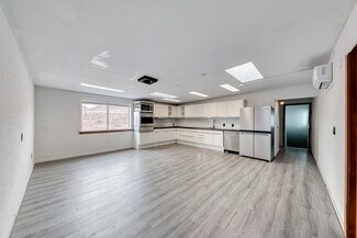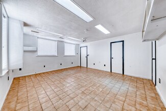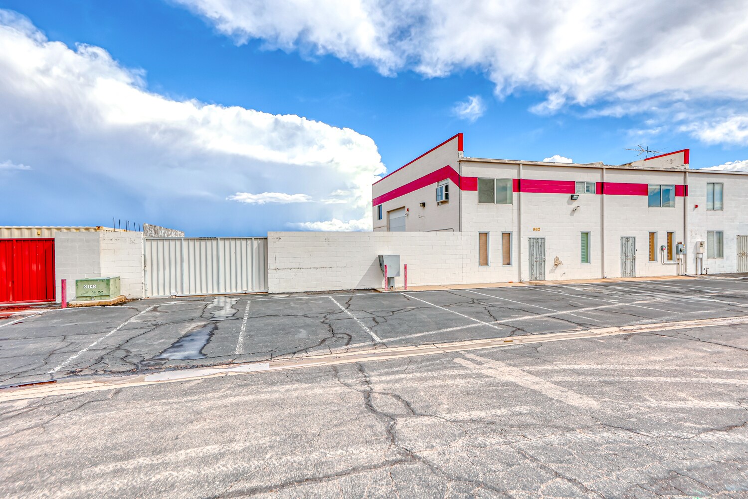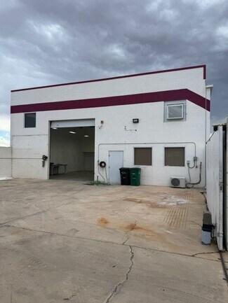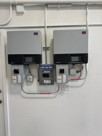A large Warehouse with 17 ft clearance serviced by a large ground level loading door of 14 ft in height. 5 Ton HVAC services warehouse area. and the two bottom floor offices each have there own restroom with mini split A/C. Solar power, 200 amps of single phase power. Three separate entrances on main floor making this possible to divide and make a multi unit building. Main floor consists of approximately 2070 sq ft. The second floor is approximately 1100 sq ft consisting of two rooms/offices each with a mini split A/C, Two restrooms and a kitchen/ conference room. The building has 10 parking spaces with much more in the adjacent land across the street. Enough room for a semi to completely turn around or back straight into the enclosed yard.