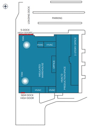 • +/- 129,000 SF infill industrial space available • +/- 72,000 SF insulated warehouse (22’ clear height) • +/- 28,800 SF HVAC’d manufacturing space • +/- 33,000 SF office space (16,500 SF downstairs, 16,500 SF upstairs) • +/- 8.178 acres of land • +/-230 parking spaces • +/- 20 trailer spaces • 5 dock high doors • 1 oversized semi dock high door • 1 grade level door • 1 dock well door • 18’-22’ clear height • Fully sprinklered • Heavy power (4,000 amps) • I-2 medium industrial zoned