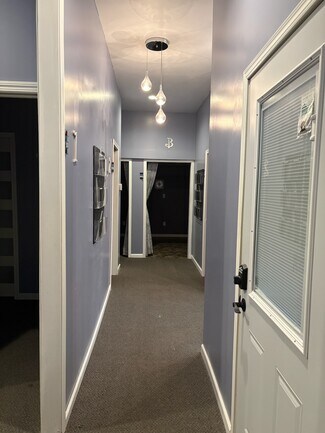 Perfectly located 10 minutes from La Porte and 10 minutes from Michigan City. This Commercial Office Space is unique! Ready to move in and start you work day! The paved parking lot is fenced in and can be locked for extra security. The parking lot can accommodate up to 20 vehicles, with 2 designated assistance spots. Reception area has double counter and bill pay window. Large waiting room to the right of the entry door. Entry door has bar exist. Two separate HDA restrooms. Upstairs area has 3 separate rooms for break room, supplies, etc. Set up with 8 separate offices with doors, some with windows; Separate room can be rented for large meetings; conference room. Conference room has it's separate restroom. Space is over 3,000 square feet; has it's own gas and electric meters, forced air heat and air. Washer and dryer hook ups are available.