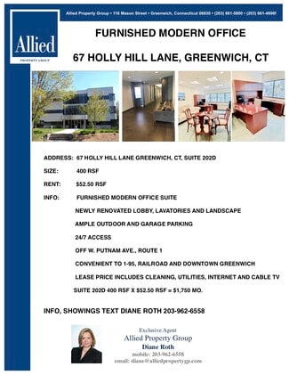 MODERN, 3 STORY, 20,947 SF OFFICE BUILDING 97% LEASED, EXCELLENT 4.2 PARKING SPACES FOR EVERY 1,000 SF WITH 50 SPACES IN COVERED GARAGE WELL MAINTANED, WELL MANAGED BUILDING OFFERS TURNKEY OWNERSHIP OF A CLASS A BUILDING IN A DESIRABLE GREENWICH LOCATION