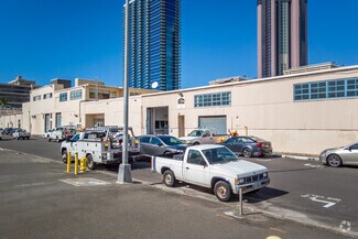 Excellent Kakaa'ko location, steps from SALT, H-Mart, Fisher Hawaii and Down to Earth. 8,403 sq.ft. of open warehouse space. Clerestory windows give natural light. Two roll up doors and one personnel door on the loading dock (Keawe Street). Back entry access via personnel door to Coral / Auahi Street. Fire sprinklers throughout.