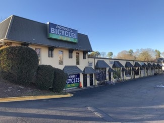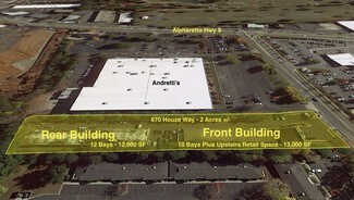 Two buildings on 2+/- acres of land. Front building is primarily Roswell Bicycles occupying 8,240 SF - all of top floor and most of the remaining building. 3 Suites total. There are 10 ground level bays in the front building. Roswell Outback Automotive occupies the 4th suite in front building (3,090 SF.) The rear building has 12,360 sf and 12 bays with roll up doors. Front building has been approved in the past by Roswell to do a 2nd floor office space.