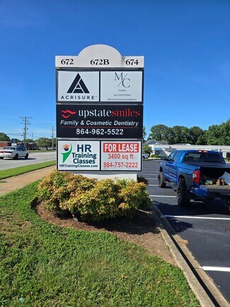 Well maintained end unit available in an excellent location on booming Fairview Road. Plenty of parking! Great visibility! Marquee signage. Zoned BG which allows for many uses.
