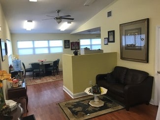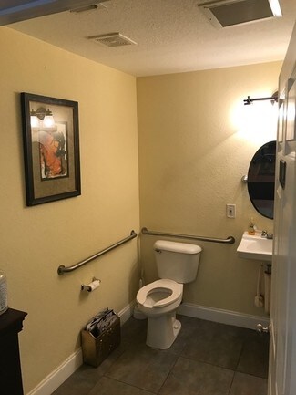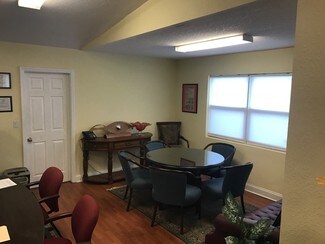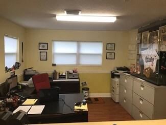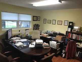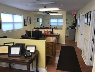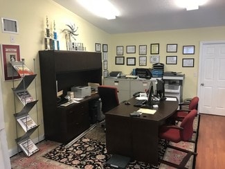 Space includes: one private office, handicap bathroom, kitchenette in the break room, 10x20 storage room, 6 dedicated parking spots plus an additional handicap spot, and a two sided illuminated sign in the front yard.